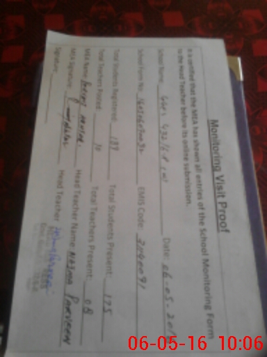 | Attendance Register | Head Teacher | MEA with School | Visit Proof |