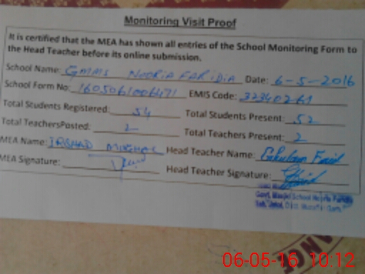 | EMIS Code: 32340261 | Name of School: GPS NOORIA FARIDIA | |||