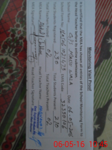 | Certified that this School was Inspected by the Undersigned MEA/DMO Today and the Information Stated Above is as Per Record. | |||||