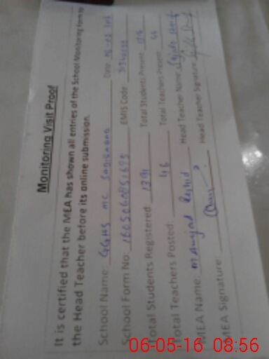 | Certified that this School was Inspected by the Undersigned MEA/DMO Today and the Information Stated Above is as Per Record. | |||||
