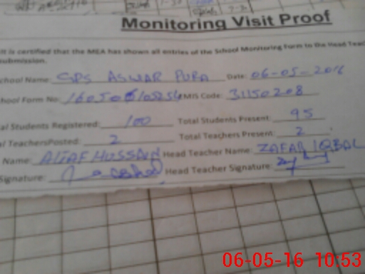 | EMIS Code: 31150208 | Name of School: GPS ASWAR PURA | |||
