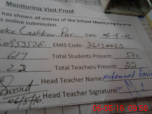 | Attendance Register | Head Teacher | MEA with School | Visit Proof |