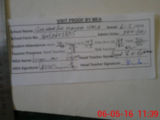 | Attendance Register | Head Teacher | MEA with School | Visit Proof |