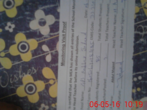 | Attendance Register | Head Teacher | MEA with School | Visit Proof |