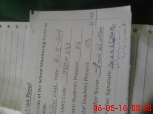 | Attendance Register | Head Teacher | MEA with School | Visit Proof |