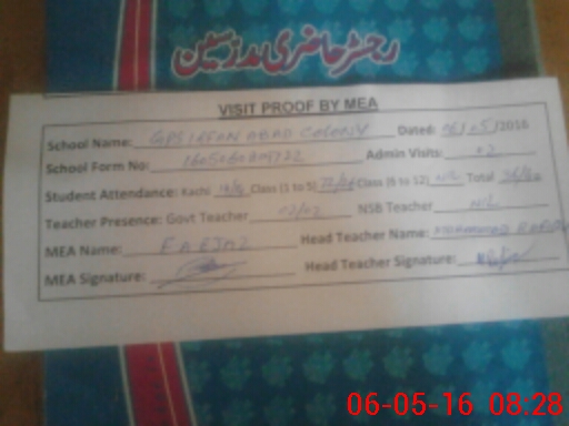 | EMIS Code: 32410467 | Name of School: GPS IRFAN ABAD COLONY | |||