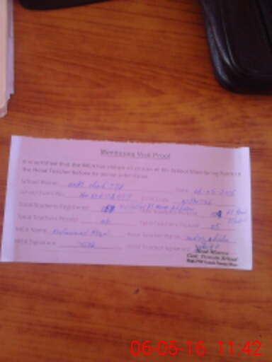| Attendance Register | Head Teacher | MEA with School | Visit Proof |