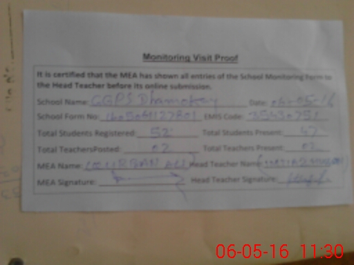 | Certified that this School was Inspected by the Undersigned MEA/DMO Today and the Information Stated Above is as Per Record. | |||||