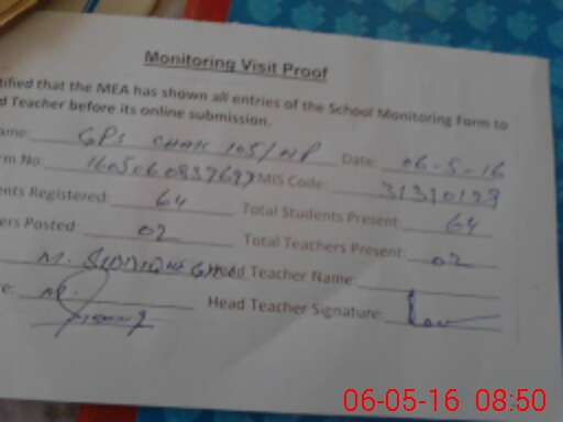 | Certified that this School was Inspected by the Undersigned MEA/DMO Today and the Information Stated Above is as Per Record. | |||||