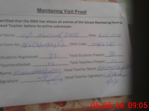 | Attendance Register | Head Teacher | MEA with School | Visit Proof |