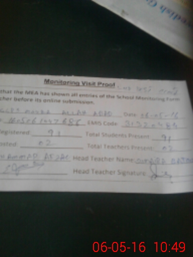 | EMIS Code: 31320484 | Name of School: GGPS MOUZA ALLAH ABAD | |||