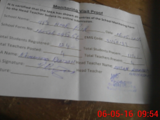 | Attendance Register | Head Teacher | MEA with School | Visit Proof |