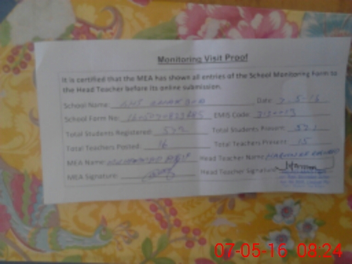 | Certified that this School was Inspected by the Undersigned MEA/DMO Today and the Information Stated Above is as Per Record. | |||||