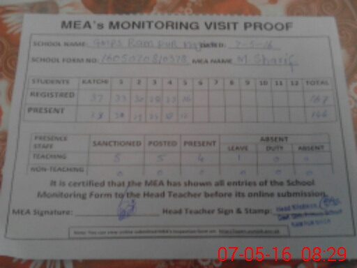 | EMIS Code: 36430399 | Name of School: GMPS RAM PUR MAGHA, TULAMBA | |||