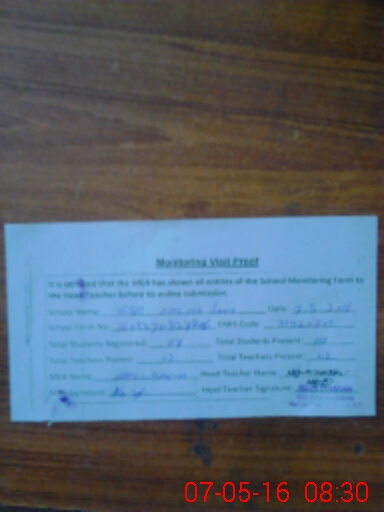 | Attendance Register | Head Teacher | MEA with School | Visit Proof |