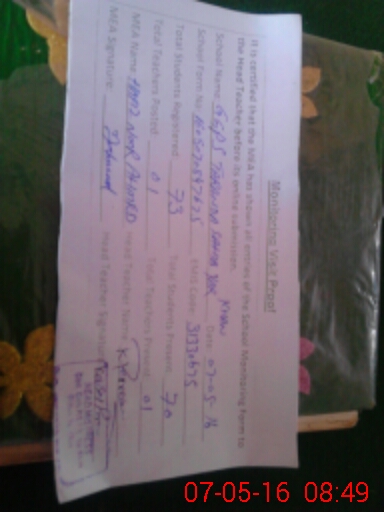 | Monitoring Date: 07-05-2016 | Start Time: 07-05-2016 08:20 AM | End Time: 07-05-2016 08:53 AM | Name of MEA: Mu**** Ah**** | |