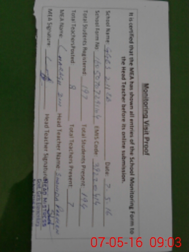 | Certified that this School was Inspected by the Undersigned MEA/DMO Today and the Information Stated Above is as Per Record. | |||||