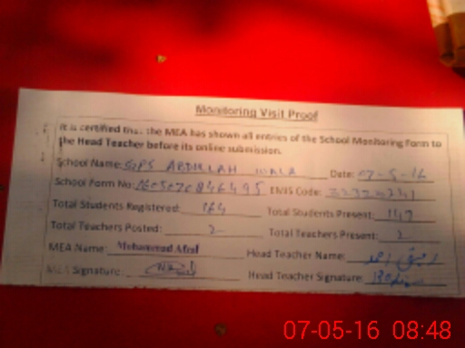 | EMIS Code: 32320241 | Name of School: GPS ABDULLAH WALA | |||