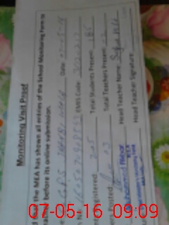 | Monitoring Date: 07-05-2016 | Start Time: 07-05-2016 08:30 AM | End Time: 07-05-2016 09:13 AM | Name of MEA: MU**** AK**** | |