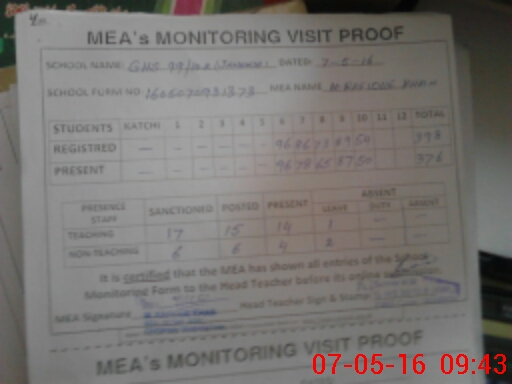 | Certified that this School was Inspected by the Undersigned MEA/DMO Today and the Information Stated Above is as Per Record. | |||||
