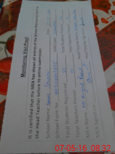 | Certified that this School was Inspected by the Undersigned MEA/DMO Today and the Information Stated Above is as Per Record. | |||||