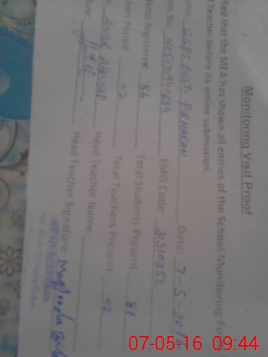 | Certified that this School was Inspected by the Undersigned MEA/DMO Today and the Information Stated Above is as Per Record. | |||||