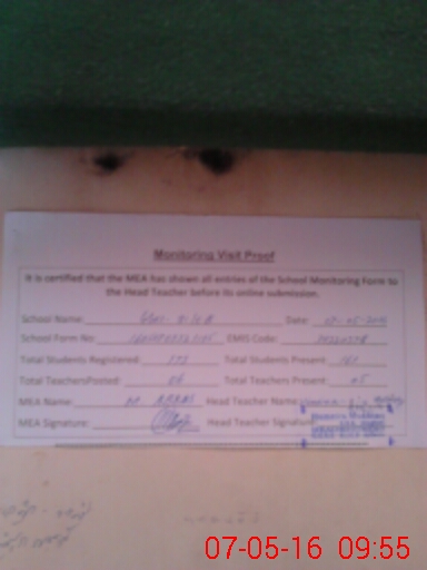 | Attendance Register | Head Teacher | MEA with School | Visit Proof |