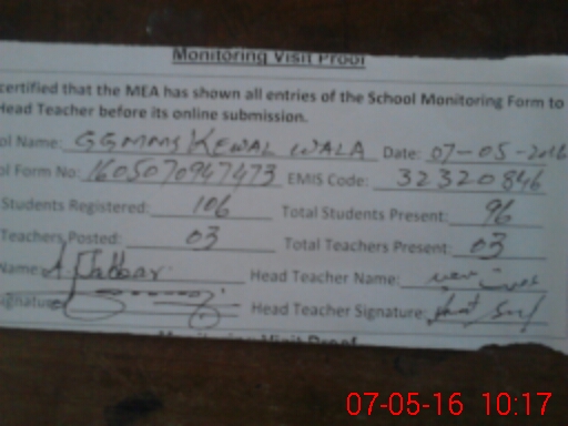 | Certified that this School was Inspected by the Undersigned MEA/DMO Today and the Information Stated Above is as Per Record. | |||||