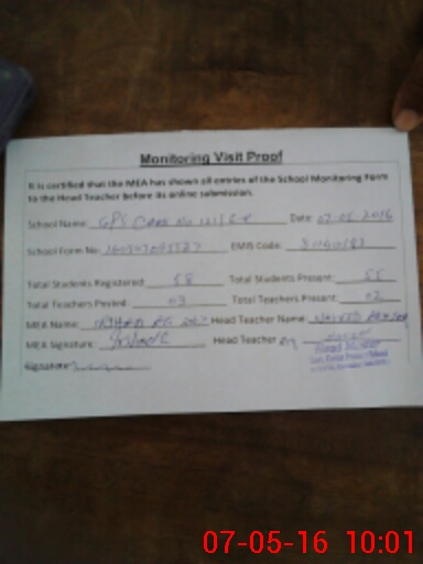 | Attendance Register | Head Teacher | MEA with School | Visit Proof |