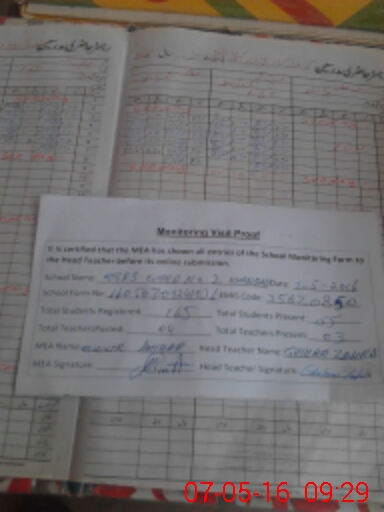 | Attendance Register | Head Teacher | MEA with School | Visit Proof |