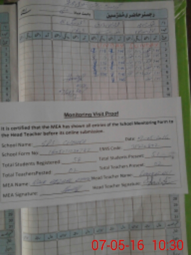 | Attendance Register | Head Teacher | MEA with School | Visit Proof |