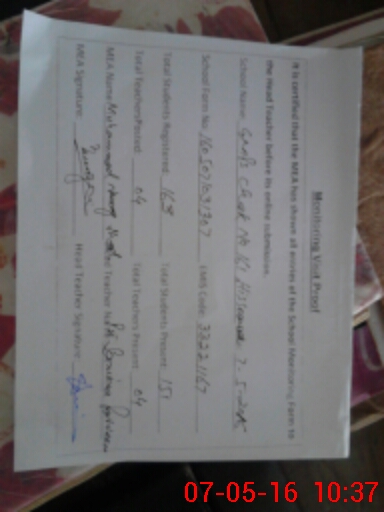 | Certified that this School was Inspected by the Undersigned MEA/DMO Today and the Information Stated Above is as Per Record. | |||||