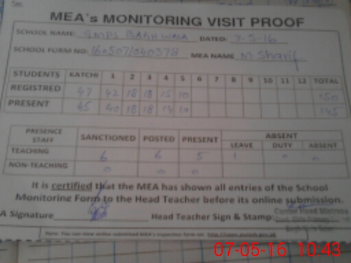 | Certified that this School was Inspected by the Undersigned MEA/DMO Today and the Information Stated Above is as Per Record. | |||||