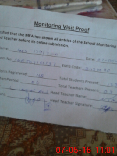 | Certified that this School was Inspected by the Undersigned MEA/DMO Today and the Information Stated Above is as Per Record. | |||||
