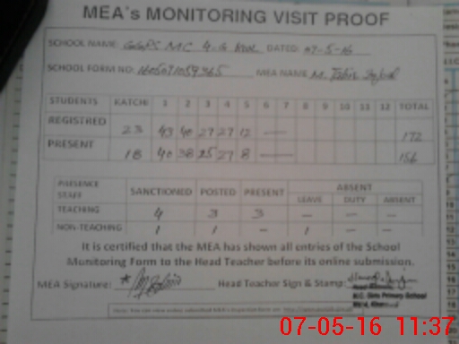 | Attendance Register | Head Teacher | MEA with School | Visit Proof |