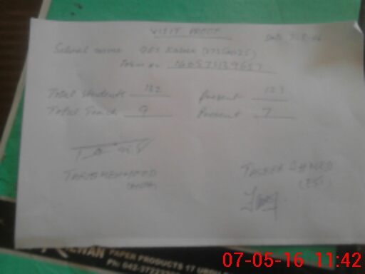 | Attendance Register | Head Teacher | MEA with School | Visit Proof |