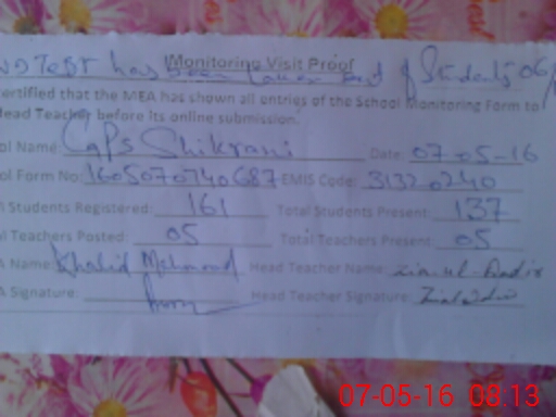 | EMIS Code: 31320240 | Name of School: GPS SHUKRANI | |||