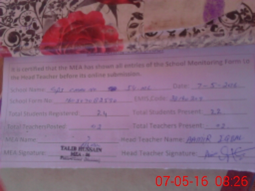 | Certified that this School was Inspected by the Undersigned MEA/DMO Today and the Information Stated Above is as Per Record. | |||||