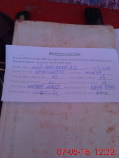 | Attendance Register | Head Teacher | MEA with School | Visit Proof |