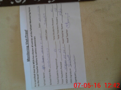 | Attendance Register | Head Teacher | MEA with School | Visit Proof |