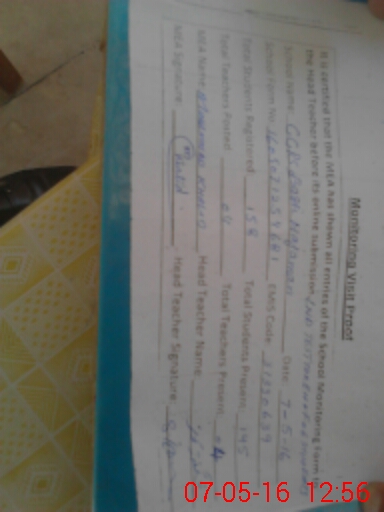| Name: Sa**** Pa**** Designation: (School Headmaster's/Headmistress's) Pst Phone/Cell Number: 03**** |