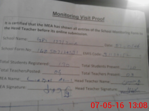 | Certified that this School was Inspected by the Undersigned MEA/DMO Today and the Information Stated Above is as Per Record. | |||||