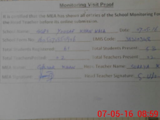 | EMIS Code: 38310348 | Name of School: GGPS YOUSUF KHAN WALA | |||