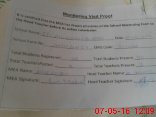 | Certified that this School was Inspected by the Undersigned MEA/DMO Today and the Information Stated Above is as Per Record. | |||||