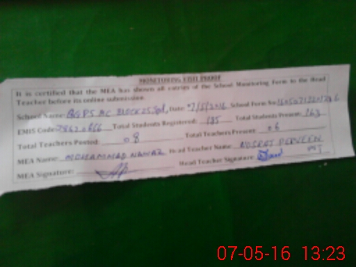 | Certified that this School was Inspected by the Undersigned MEA/DMO Today and the Information Stated Above is as Per Record. | |||||