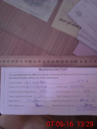 | Certified that this School was Inspected by the Undersigned MEA/DMO Today and the Information Stated Above is as Per Record. | |||||