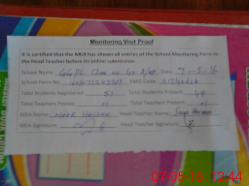 | Certified that this School was Inspected by the Undersigned MEA/DMO Today and the Information Stated Above is as Per Record. | |||||