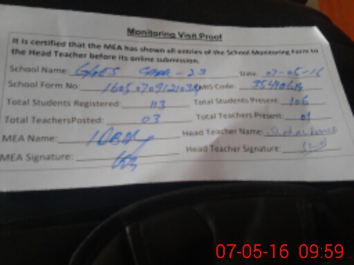 | Certified that this School was Inspected by the Undersigned MEA/DMO Today and the Information Stated Above is as Per Record. | |||||