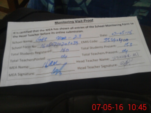 | Certified that this School was Inspected by the Undersigned MEA/DMO Today and the Information Stated Above is as Per Record. | |||||