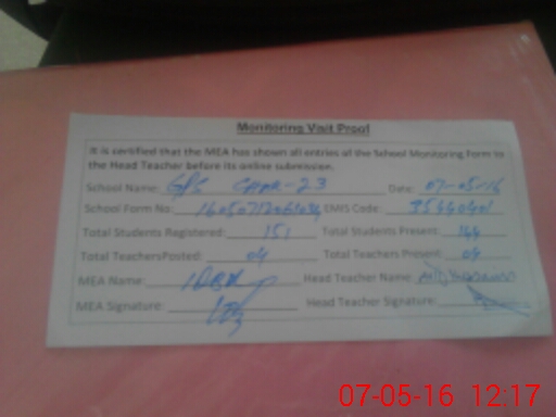 | EMIS Code: 35440401 | Name of School: GPS CHAK NO.23 SOUTH | |||